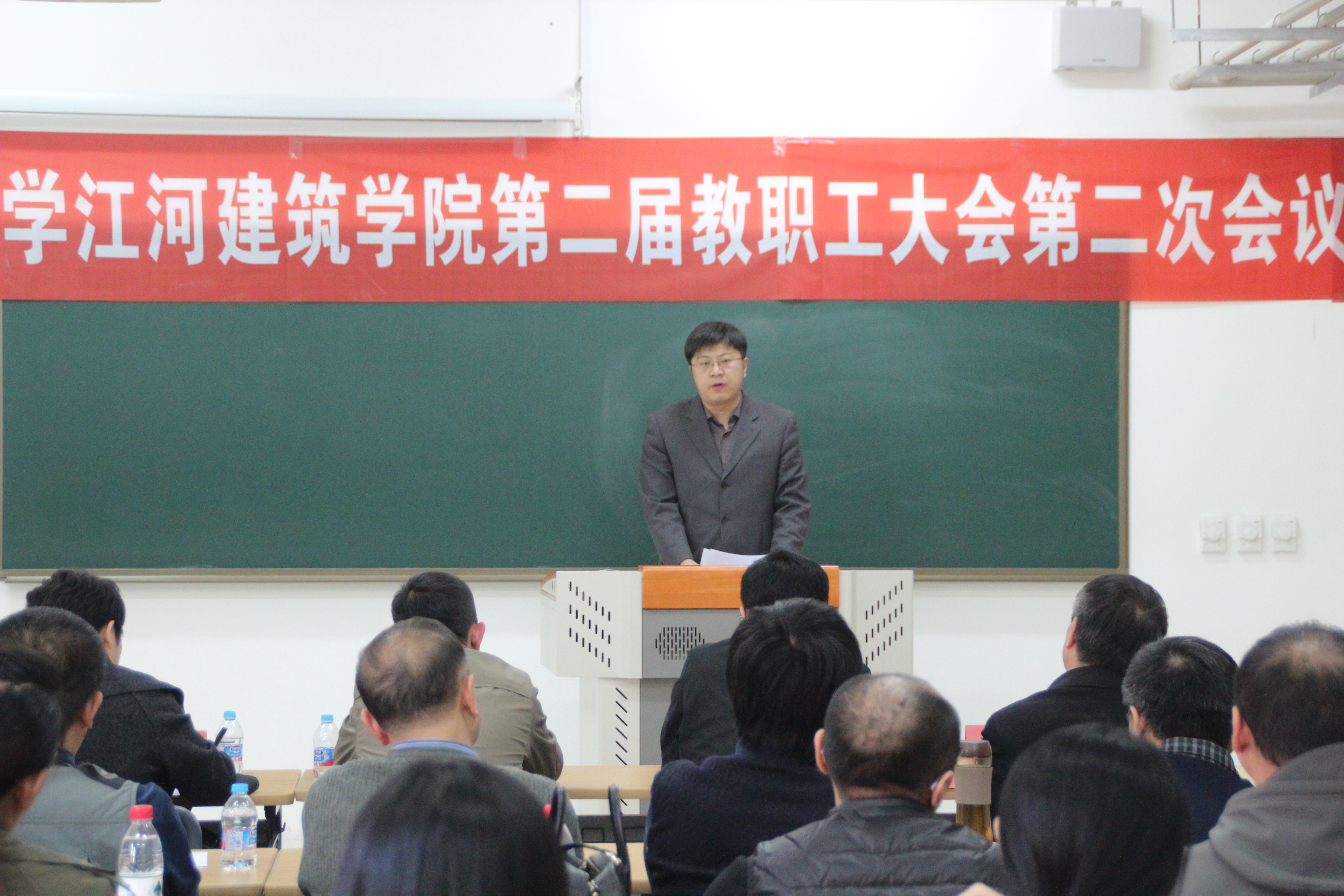 4月12日,学院在建筑学馆B402室,召开了江河建筑学院第二届教职工大会第二次会议,大会由学院工会主席高雁鹏主持,学校工会副主席孙东来、工商学院党委书记郝树满、教代会执委外国语学院张金玲、计算机科学与工程学院工会主席姚兰、中荷生物医学与信息工程学院工会主席姜永生和学院全体教职工参会。