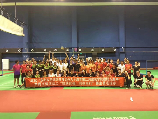 为庆祝东北大学建筑教育创办九十周年暨学院建院五周年,响应共青团中央“走下网络,走出寝室,走向操场”的“三走”号召,5月15日、17日晚,学院于浑南校区风雨操场举办“锦绣前程,羽你同行”第六届师生羽毛球比赛。
