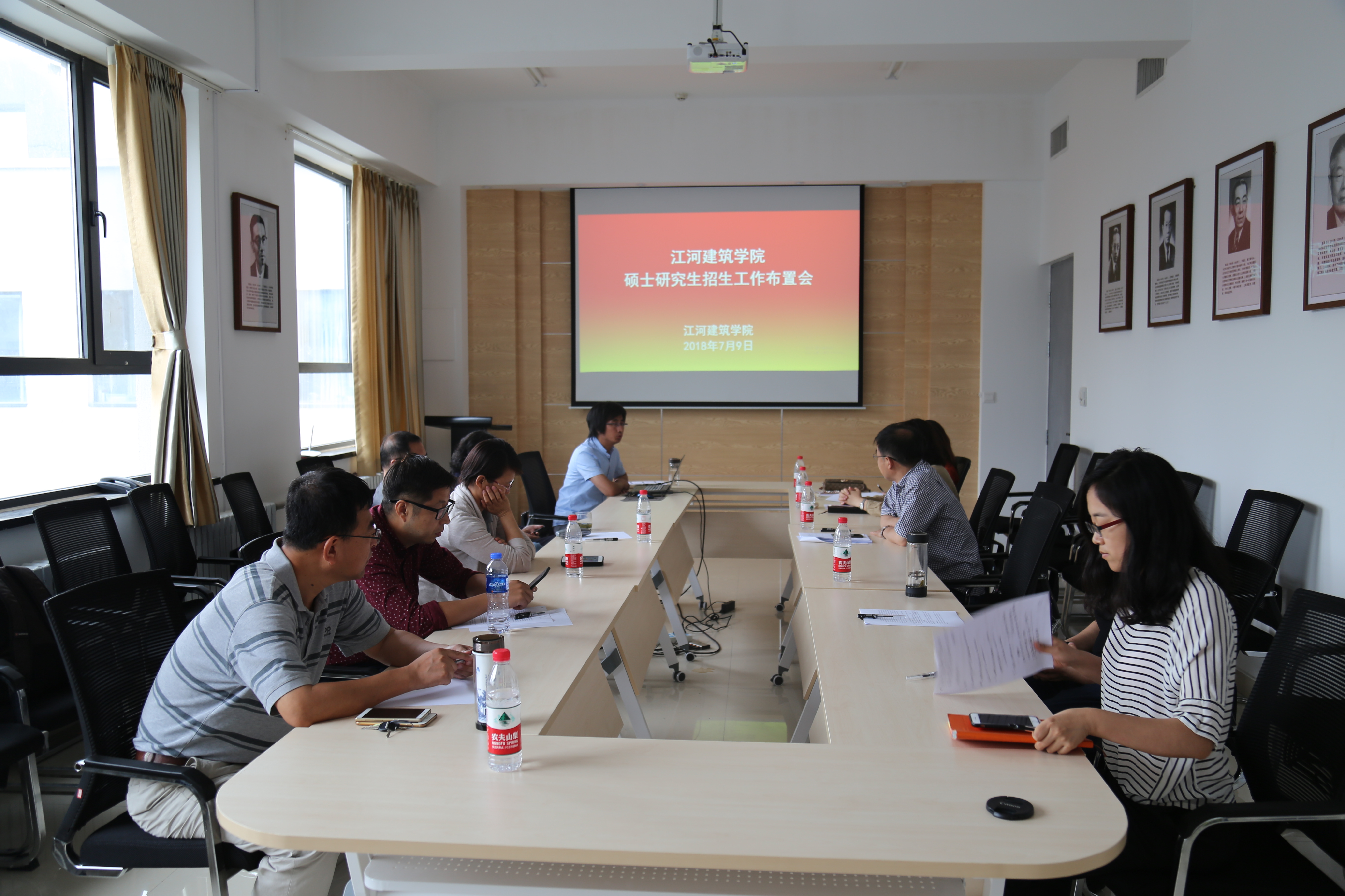 2018年7月9日,江河建筑学院在学院学术报告室召开硕士研究生招生工作布置会。学院全体硕士研究生导师参会,会议由曲艺主持。