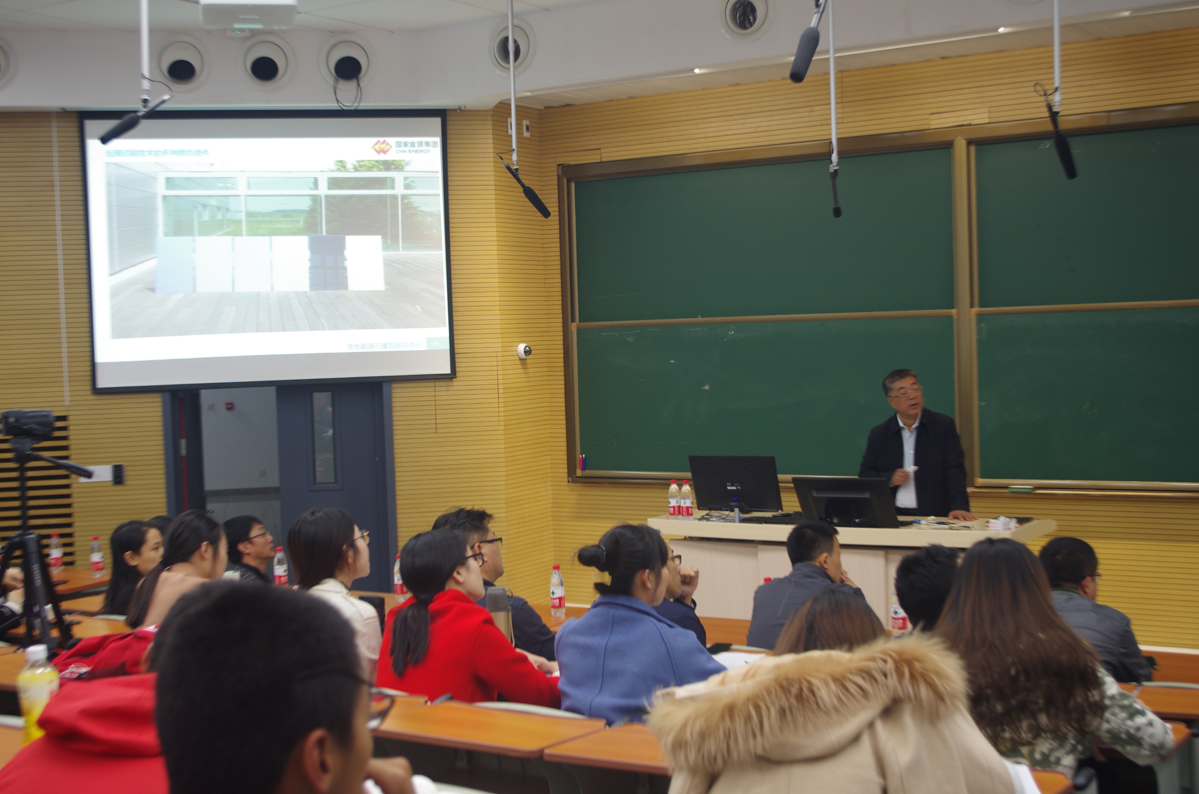 近年,秦文军教授一直走在新能源建筑研究的前沿,他发现相较于多晶硅电池,GIGS薄膜太阳能电池外形美观均匀,光能转换率已经逼近多晶硅,是能够掀起建筑领域改革风暴的材料。秦文军教授以此为学院师生带来关于新能源建筑以及未来建筑发展方向的学术讲座。