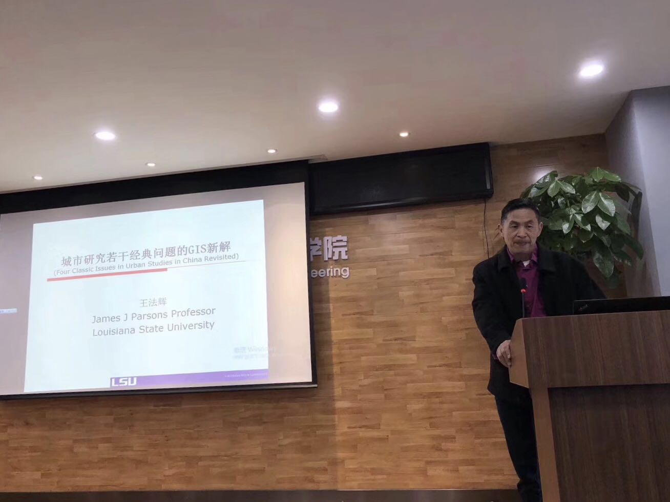 2018年12月28日,东北大学建筑教育创办90周年暨江河建筑学院建院5周年系列学术活动之“城市研究若干经典问题的GIS解析”学术讲座在建筑学馆B302召开,应江河建筑学院院长修春亮教授邀请,路易斯安那州立大学地理与人类学系终身教授,中国文化与商业中心主任,王法辉教授莅临我院进行讲学。