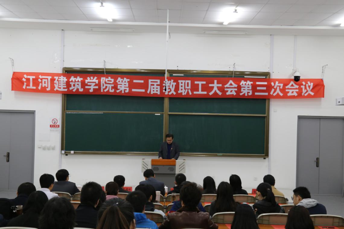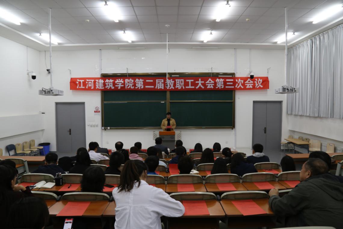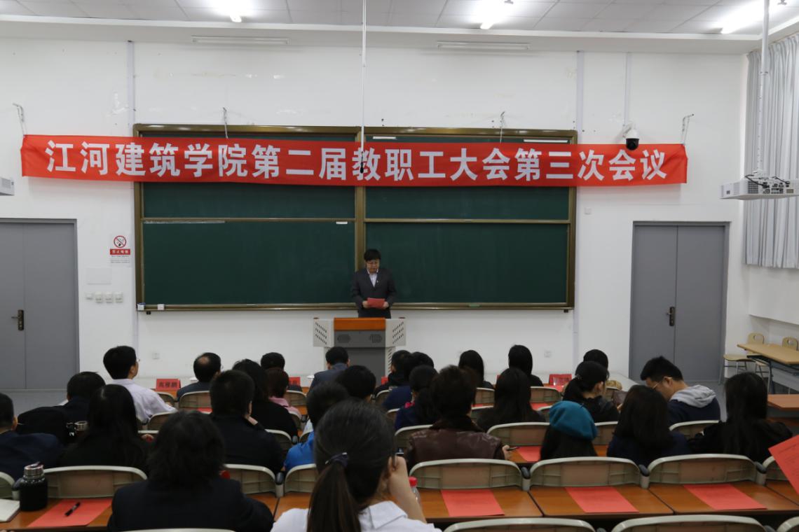 最后,在嘹亮的校歌中,江河建筑学院第二届教职工大会第三次会议胜利闭幕。
