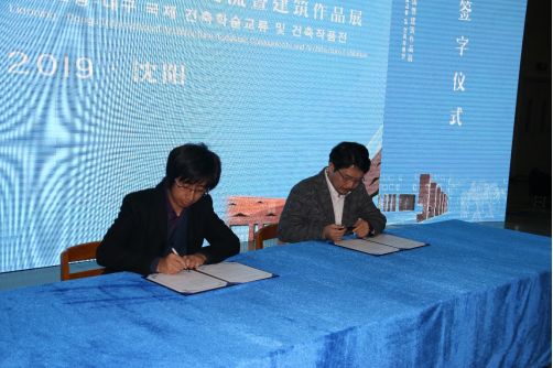东北大学江河建筑学院副院长曲艺与庆北大学建筑学副部长兼大邱-庆北建筑家会会长房李相洪签署学科交流协议