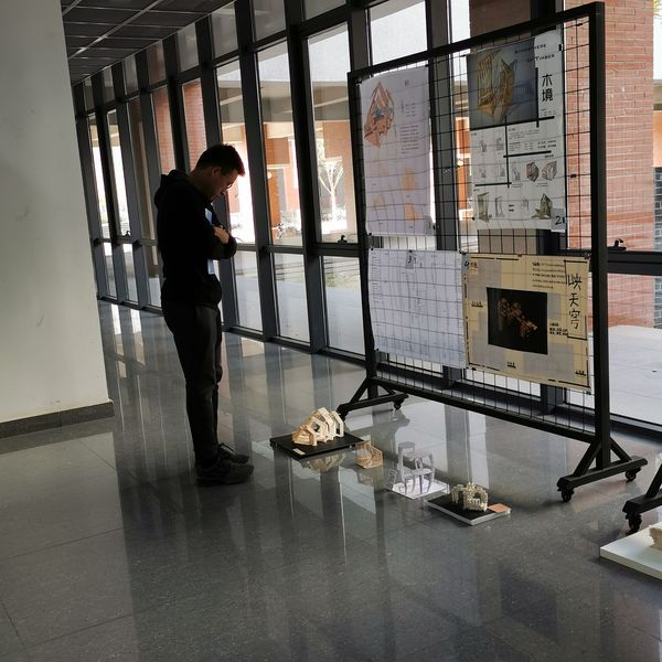 本次搭建主题由副院长曲艺设立,要求各组根据自己所选的材料的特性,采用相应的构筑手法,搭建底面积在一乘一至二乘二平方米之间,高度不超过2米的构筑物,构筑物需至少可容纳2名成人。大赛要求每组分别联络一位专业教师进行具体制作指导。