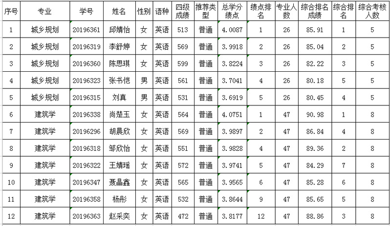 江河建筑学院2024年推荐优秀应届本科毕业生免试攻读研究生名单公示如下,公示时间为9月25日-9月27日,如有异议,请实名以书面或口头形式向综合办公室反映,联系电话:024-83651508。
