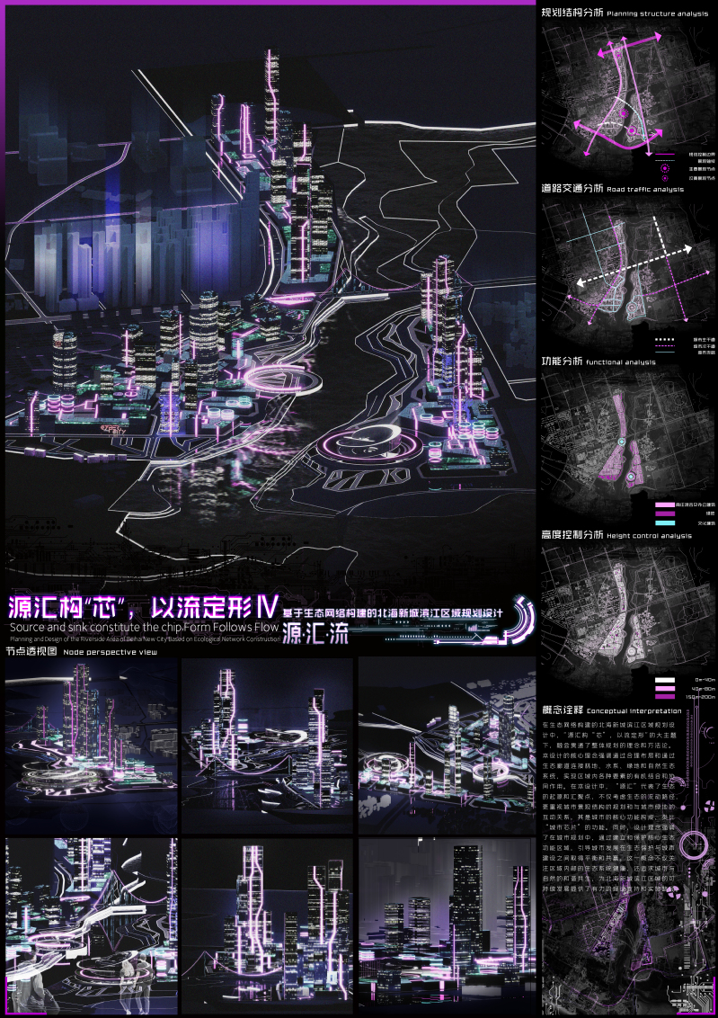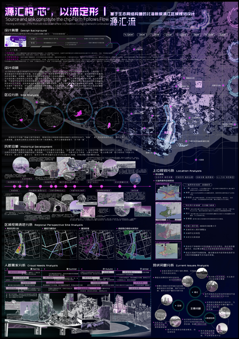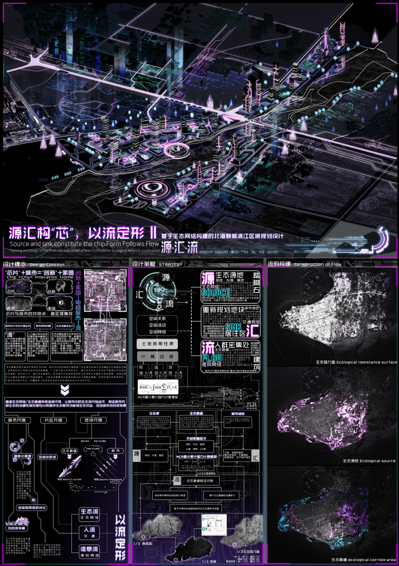 作品名称:源汇构“芯”,以流定形--基于生态网络构建的北海新城滨江区域规划设计