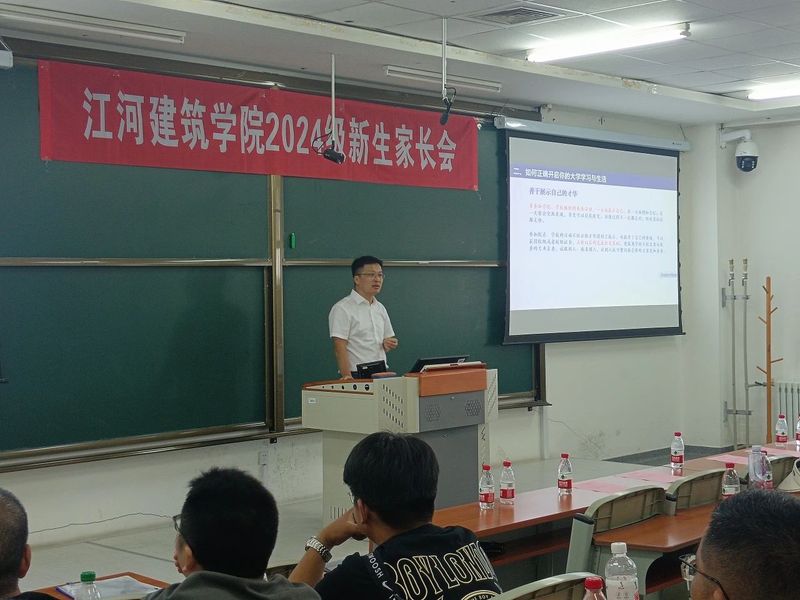 下午,新生家长会在建筑学馆A402举行,学院领导班子、新生班导师及全体机关教师出席了会议。首先,学院党委书记马静涛致辞,向家长新生介绍了江河建筑学院这个“有着悠久历史的年轻学院”,正面对世界的快速变化和不确定性,积极做面向未来的教育,培养学生的核心竞争力:厚植学生的家国情怀,开拓学子国际视野,提升其专业能力、综合素质、健康体魄等等。之后,学院副院长张九红为新生讲授“开学第一课”,就学校、学院的具体情况进行了详细介绍,并对学院专业设置、人才培养体系、学生就业深造、教育教学成果等内容进行了讲解。最后,学院党委副书记、副院长韩丰琨对大学期间的各项学生政策和规章制度进行了细致解读,并对新生进行安全教育,号召同学们要正确开启大学学习生活,家校携手共同促进学生成长成才。除此之外,学院还邀请了学校心理中心的老师,为新生和家长们介绍了大学生心理健康教育有关内容。