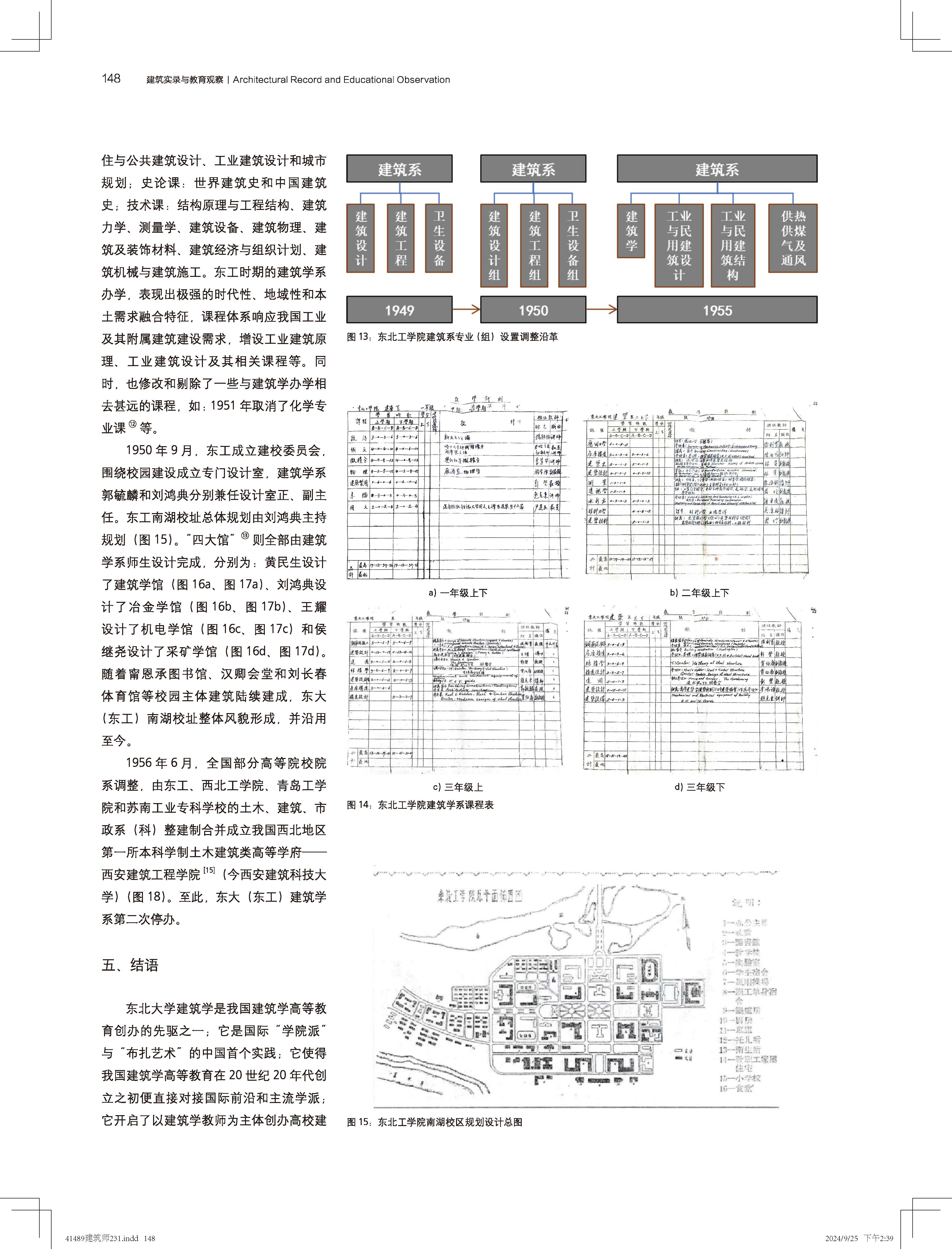 1921年,东大筹办之初设立文科、理科、工科、农科、商科、法科6科,建筑学系作为工科第6个系位列其中,1928年,随着梁思成和林徽因两位先生入职,东大建筑学系进入实质办学,先后经历了1928至1933的东大建筑学系创办和1946至1956的东大(沈阳工学院和东北工学院)建筑学系复办,文章对此两阶段办学形成相关梳理与考证,即: