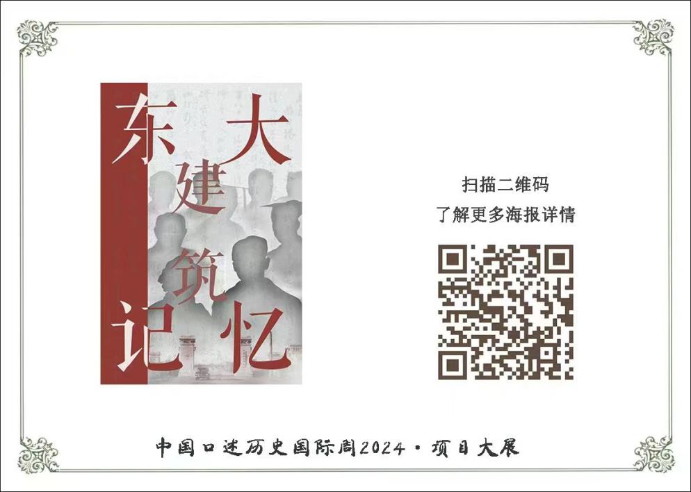 近日,由中国传媒大学主办、中国传媒大学崔永元口述历史研究中心承办的第十届中国口述历史国际周在北京举办。我院陈颖、张然老师指导的第十七批大学生创新项目“国家级优秀”项目、“最佳创意”项目——“与百年‘东大建筑’的对话”研究成果成功入选参展,参展内容包括“东大建筑记忆——口述访谈文集”“口述史视角下的科普实践纪念册”及我院原创主题文创产品等。