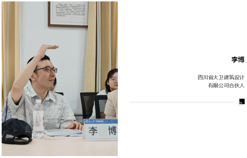 答辩委员会委员:吉林建筑大学建筑与规划学院教授周春艳;哈尔滨工业大学建筑与设计学院教授、博士生导师张宇;哈尔滨工业大学建筑与设计学院教授、博士生导师孟琪;天津大学建筑学院副研究员王超;四川省大卫建筑设计有限公司合伙人李博。