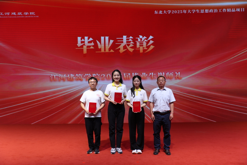 第二篇章“栋梁·闪耀荣光”伊始,学院党委书记马静涛宣读《关于优秀毕业生、毕业设计等的表彰决定》,他叮嘱毕业生们要时刻牢记习近平总书记的殷切嘱托,自觉把实现中国梦和中华民族伟大复兴的满腔热情转化为刻苦学习、勤奋工作、报效祖国的实际行动,努力成为推进中国式现代化新征程上的先锋力量;宣读毕,学院党委书记马静涛、副院长张九红、学院党委副书记兼副院长韩丰琨、学院本科教学负责人席天宇、城乡规划系主任高雁鹏、建筑系主任刘哲铭先后为“辽宁省优秀毕业生”、“东北大学优秀毕业生”、“东北大学优秀毕业生干部”、“志愿服从国家需要优秀毕业生”、“就业之星”、“江河建筑学院优秀毕业生”、“东北大学本科优秀毕业设计”、“江河建筑学院本科优秀毕业设计”获得者颁发证书。随后,由毕业生李海栋、梁媚、覃畅之、王彬、彭晓峰演唱歌曲《第一天》和《我爱你中国》。