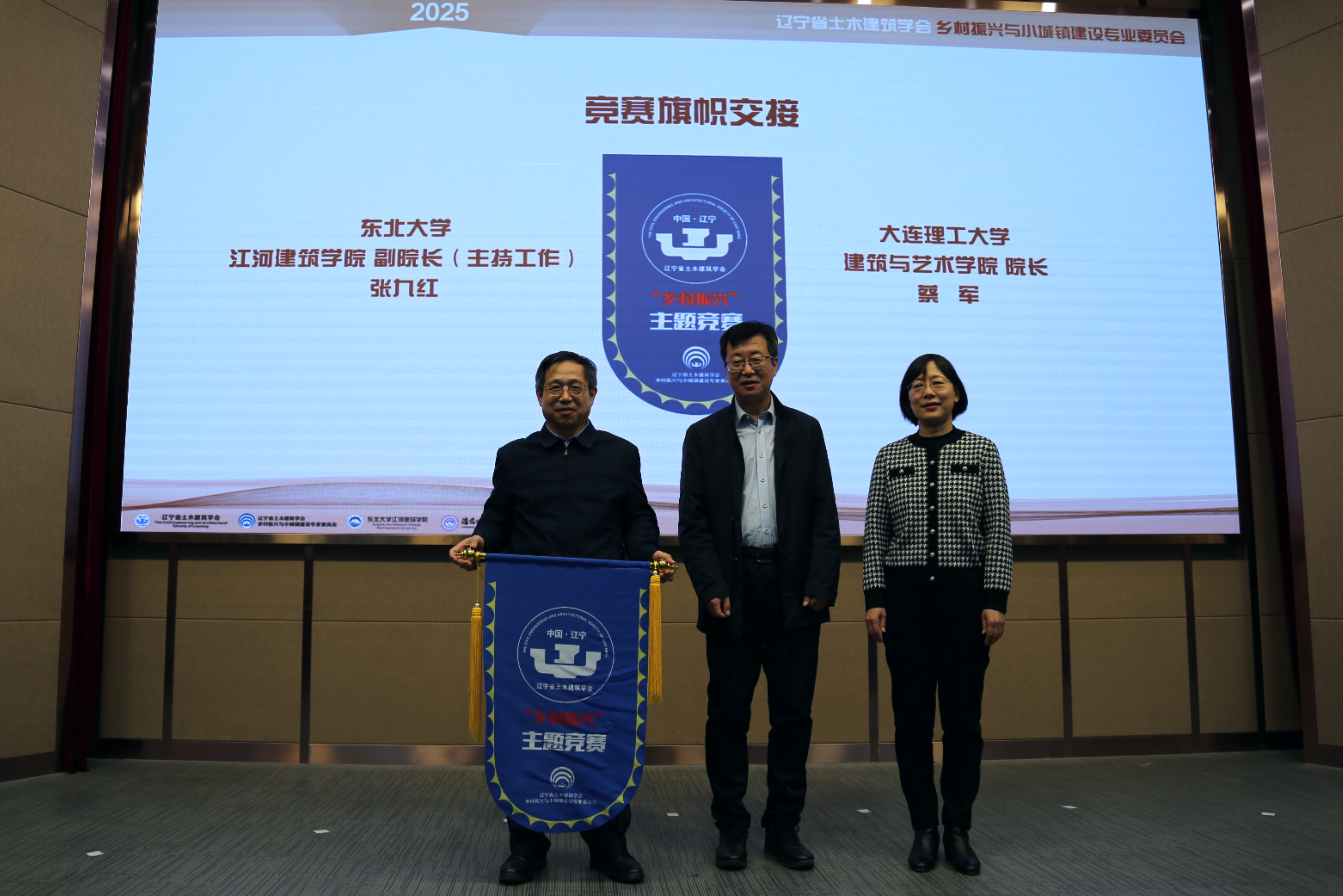 与东北大学江河建筑学院副院长(主持工作)张九红教授交接会旗