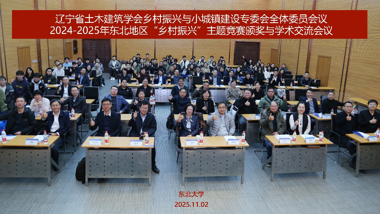 为推动辽宁省乡村振兴与小城镇建设发展,全面促进乡村及小城镇的人居环境提升,构建科技创新体系并引导相关行业的健康有序发展,辽宁省土木建筑学会乡村振兴与小城镇建设专委会于2025年11月在东北大学和沈阳城市建设学院举办系列会议。其中,专委会主任委员会议于11月1日下午在沈阳城市建设学院顺利召开,由东北大学江河建筑学院承办的专委会全体委员会议以及2024-2025年东北地区“乡村振兴”主题竞赛颁奖与学术交流会议于11月2日在东北大学成功举办。