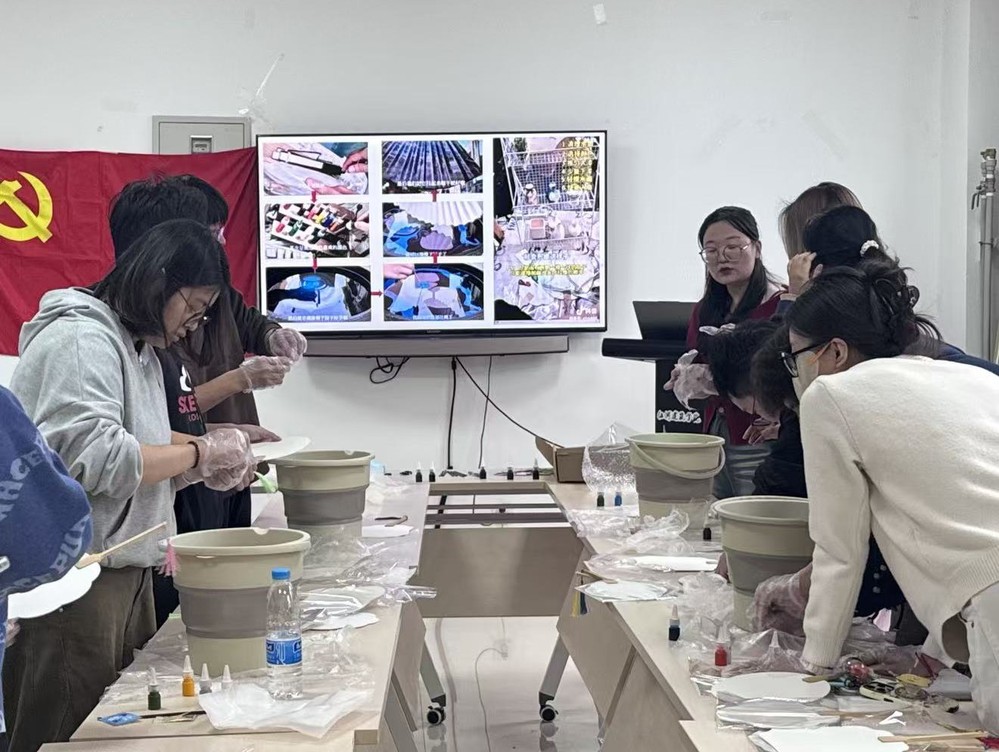 彩漆滴入水中,缓缓绽开如烟似霞的纹路,一把素白的扇面浸入又提起,便凝结了流动的色彩与建筑学子的匠心。为弘扬中华优秀传统文化,在亲身实践中感悟非遗魅力,东北大学江河建筑学院近期成功举办“纸扇传善·水印丹青” 主题党日活动。本次活动将非遗漆扇制作与建筑美学感悟相结合,成为一堂生动鲜活的文化自信实践课。