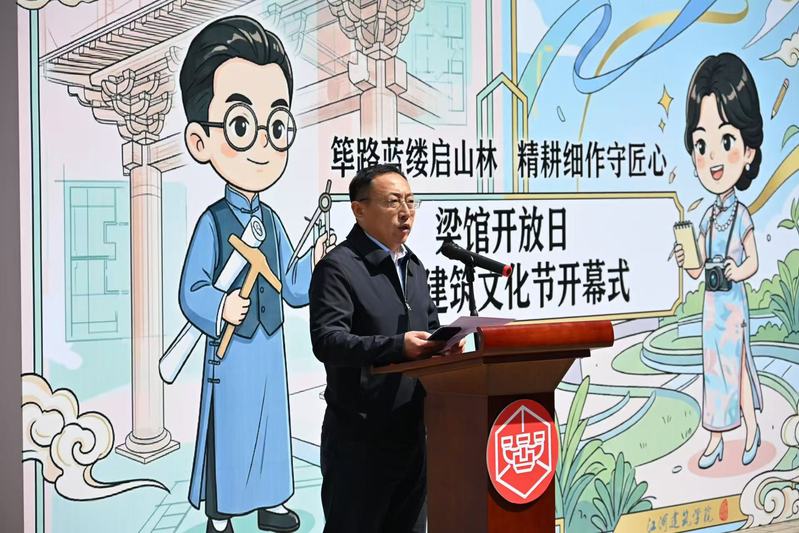 开幕式由学院党委副书记、副院长韩丰琨主持,学院教师与各年级学生齐聚现场,共同参与此次活动。学院党委书记马静涛发表致辞。他指出,梁思成纪念馆是全国唯一设立在高校内的梁思成专业主题纪念馆,承载着东北大学建筑学的发展历程与育人使命。马静涛结合梁思成先生1928年在东大创建中国现代教育史上第一个建筑系的峥嵘岁月,勉励全体学子筑牢文化自信、坚守匠心品质、胸怀实干报国之志,将专业所学融入东北振兴与国家建设,以精益求精的态度打造经得起检验的建筑作品,践行新时代建筑人的责任与担当。